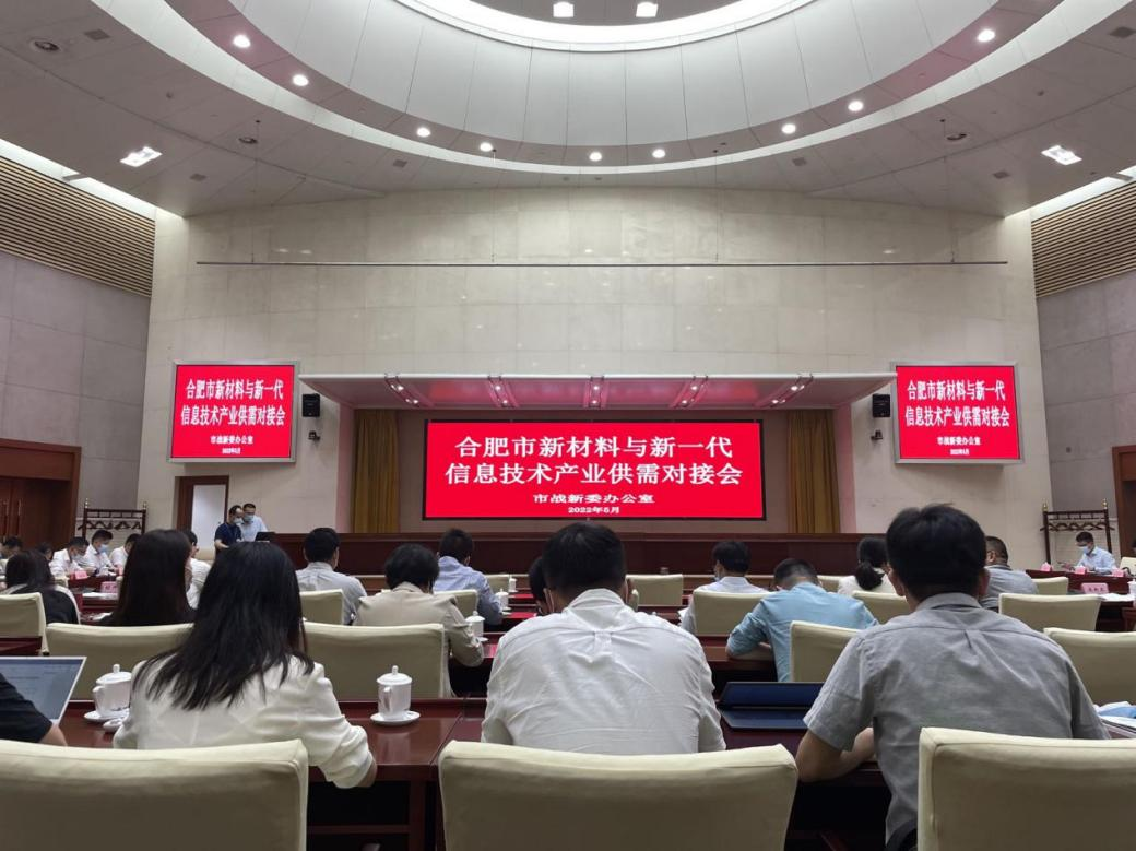 5月29日,为促进新材料产业与新一代信息技术产业高效融合发展,由合肥市经信委和市发改委牵头组织开展的新材料产业与新一代信息技术产业重点企业供需对接会在市政务中心举行。市委常委袁飞出席会议,市发改委、市科技局、市经信局、市投资促进局负责人,高新区、经开区、新站高新区、安巢经开区的集成电路、新型显示、新材料产业专班等参加会议。